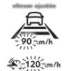 "VELOCIDADE AJUSTADA" | Quando a velocidade ajustada atinge o seu limite de regulação (velocidade de referência - 30 km/h), a velocidade ajustada começa a piscar, tal como o valor da velocidade de referência para assinalar que a desactivação automática da função está iminente. |