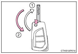 Para voltar a acondicionar a chave empurre a chave para a posição de acondicionamento enquanto prime a tecla.
